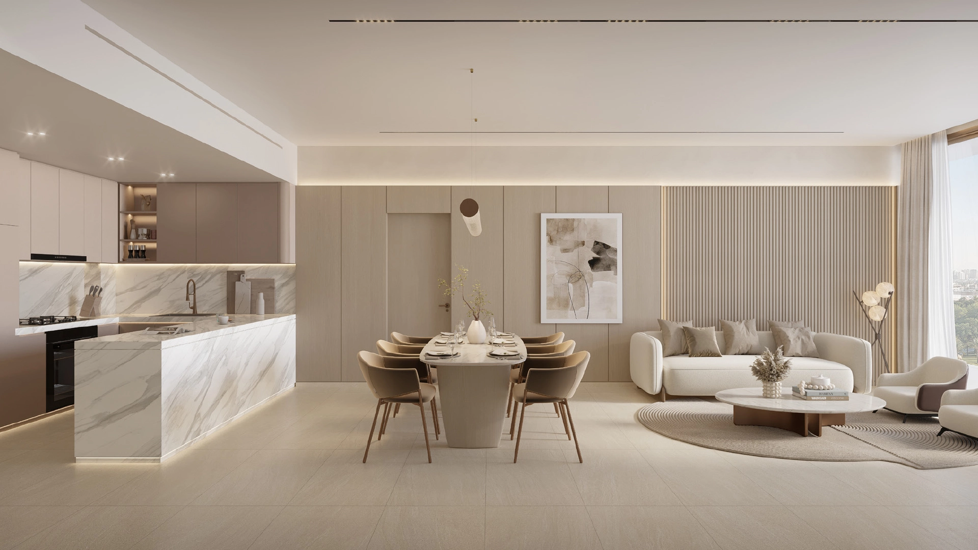 The Caden is a premium residential development by Prescott, strategically located in Meydan Horizon, Dubai, offering a refined balance between contemporary urban living and tranquil waterfront surroundings along a crystal lagoon. The development comprises 221 fully furnished and fitted residences, including one-, two-, and three-bedroom apartments, four-bedroom duplexes, and an exclusive penthouse.